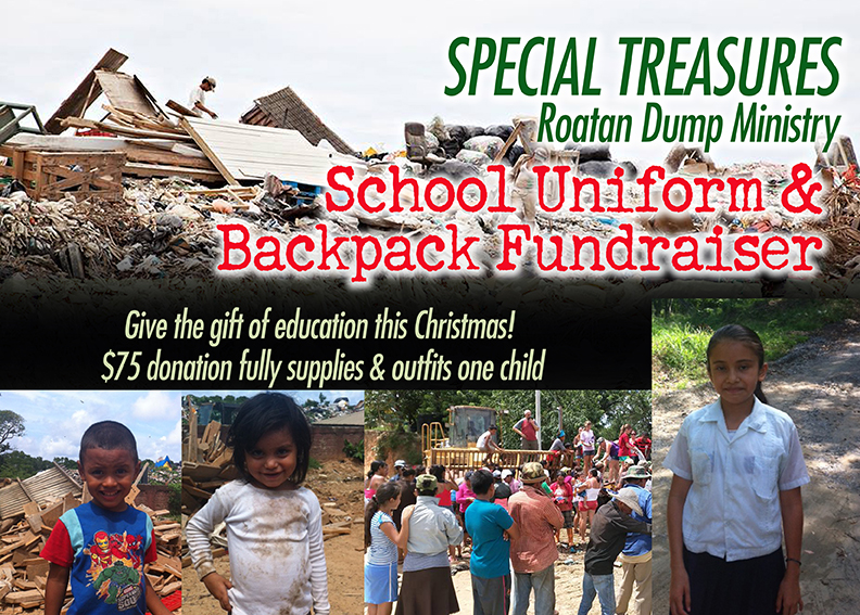 These are children who work with and live with their parents at the local dump because there are no other jobs. They earn money by picking through acres and acres of garbage to find plastic, cans and metal to sell for a few dollars to live on. This will be our 6th year sending these children to school!!! This past year, we were able to get 155 children of families that live and work at the dump completely outfitted and enrolled in school and another 85 of the neediest families to finish out their school supplies and uniforms. One of our graduates is now working at a resort in West Bay supporting his family! Many kids are in the honors program and we get all their report cards to verify attendance. In Honduras, school is free but you must have your uniform, backpack and supplies to attend. This is simply unattainable for people that make only a few dollars a day. Would you consider prayerfully sponsoring a child or helping us recruit sponsors from your church or organization. Without your help, many of these children will not be able to attend school this year and will be forced to stay in the cycle of poverty their family has endured. Thank you in advance for partnering with us with your prayers and support for these dear friends of ours. May God bless you as we serve Him and help build His kingdom together.